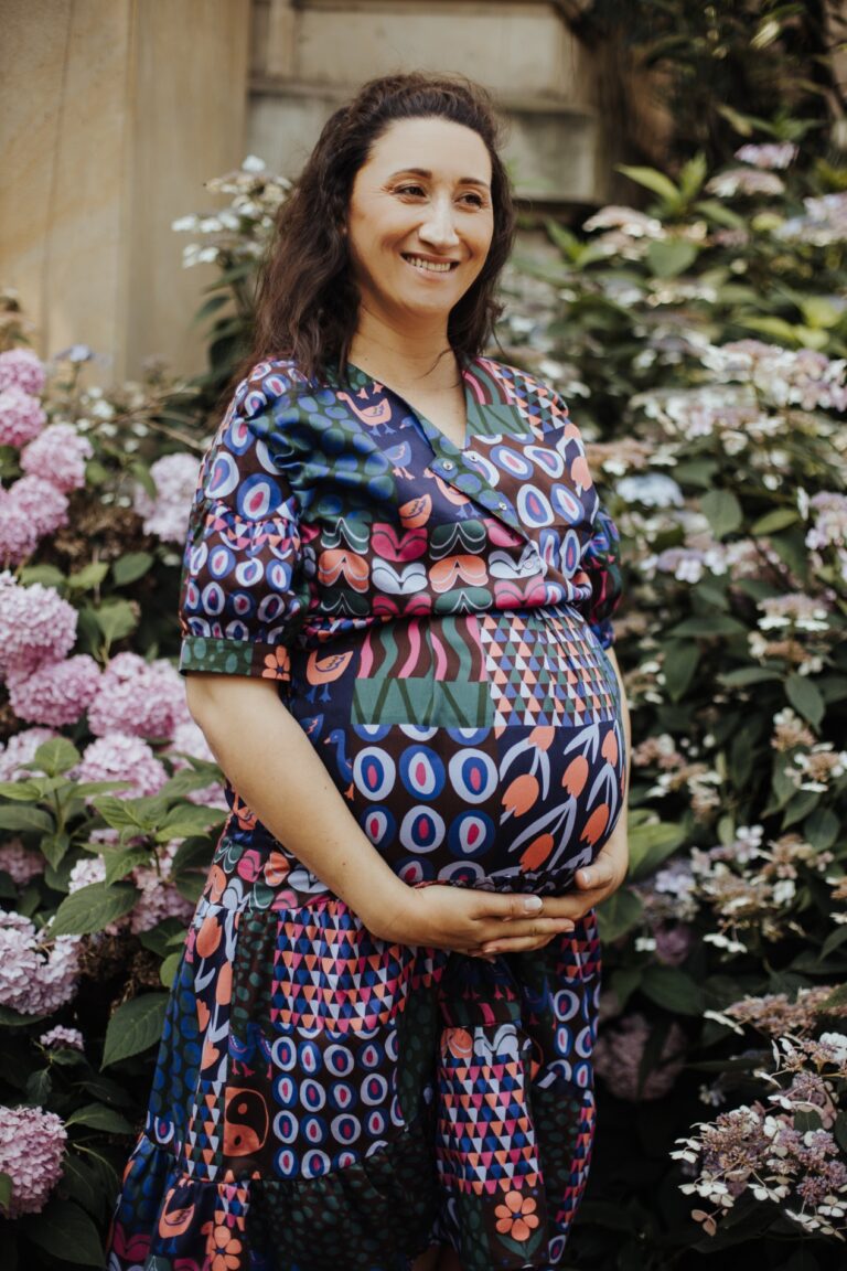 „Colorful Fiesta” to prawdziwa eksplozja kolorów i radości. Materiał w odcieniach zieleni, niebieskiego, różu i pomarańczy tworzy prawdziwy misz masz, niczym na prawdziwej modowej fiestie. Dla mnie ważne jest, aby ubrania dla mam były dalekie od nudy i szarości, dlatego wybrałam dla Was print „Colorful Fiesta” – który przywołuje radość i energię, zarówno w młodych mamach, jak i ich maluchach.